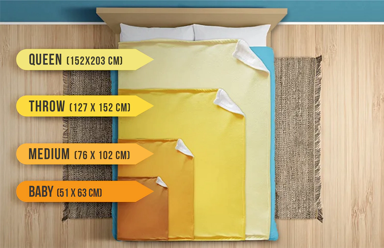 The first step in making a blanket with pictures of family, friends and every loved one is to gather the photos you want to include. Choose images (or a single photo) that hold special meaning or represent moments that you want to cherish forever. Like that stunning wedding portrait or that family trip to the beach! Next, choose the type and size of the custom blanket that suits your preferences. Whether you prefer a cozy fleece blanket or a personalized picnic blanket, consider the size that best fits your needs. We provide a range of sizes so you can make your own blanket just how you like it!