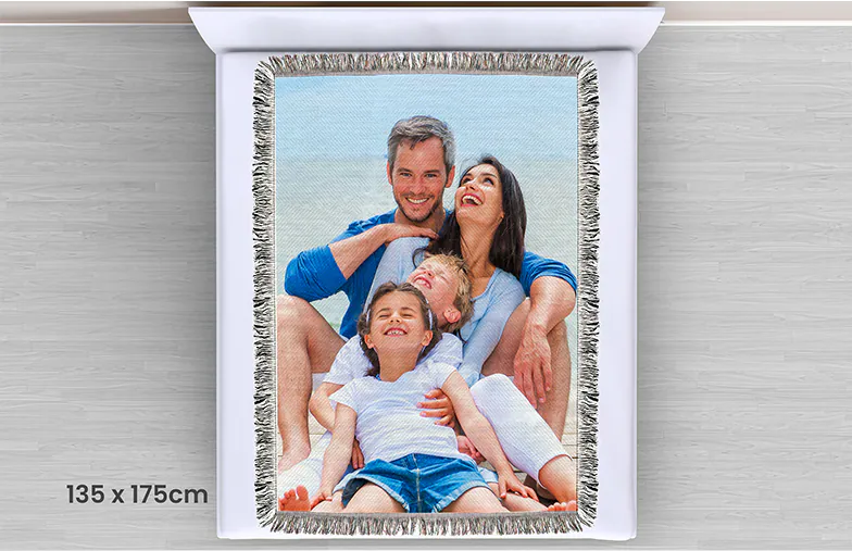 Make any occasion extra special with our custom blankets, perfect for gifting to anyone. If you’re commemorating the arrival of a new baby, create a personalised baby blanket. Made from the softest materials, our custom blankets are gentle on delicate skin and provide a sense of comfort and security. But what sets them apart is the ability to personalize them with the baby's name, birth date, or even their adorable photos. If you’re looking for the perfect anniversary gift, collect your favorite romantic photos (the first date, the first dance…) and get them printed on a wedding photo blanket. Celebrate your day-one hero with a blanket with pictures of the family. Our custom blanket designs make for a unique and meaningful gift that will be treasured for years to come. With the best prices and quick turnaround, easily make your own blanket to celebrate those precious moments. Whether you need a photo blanket for your living room, Printerpix has got you covered. These photo blankets also make for excellent wedding gifts, and quality gifts for pet-owners.